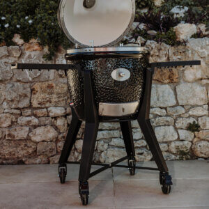Durch einfaches Umsetzen des Grillrosts kannst du deinen Kamado in einen normalen Holzkohlegrill verwandeln, um Steaks anzubraten, Hähnchen zu grillen, Fisch zu räuchern und alle deine anderen Lieblingsgerichte zuzubereiten.